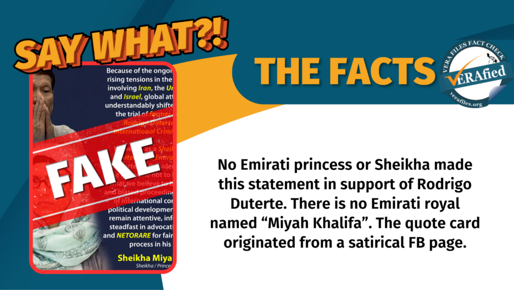 FACT CHECK: Quote card of pro-Duterte ‘UAE princess’ is FAKE