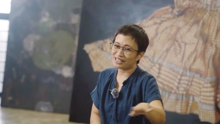 Echoing circles and swirls in polka dots, print-like collages with ghostly images, and lines, stripes, texture, and patterns on fabric, Marina Cruz presents seemingly abstract works in three parts in a solo exhibition, Fractured Fabric, at Silverlens, Makati until November 8, 2025.