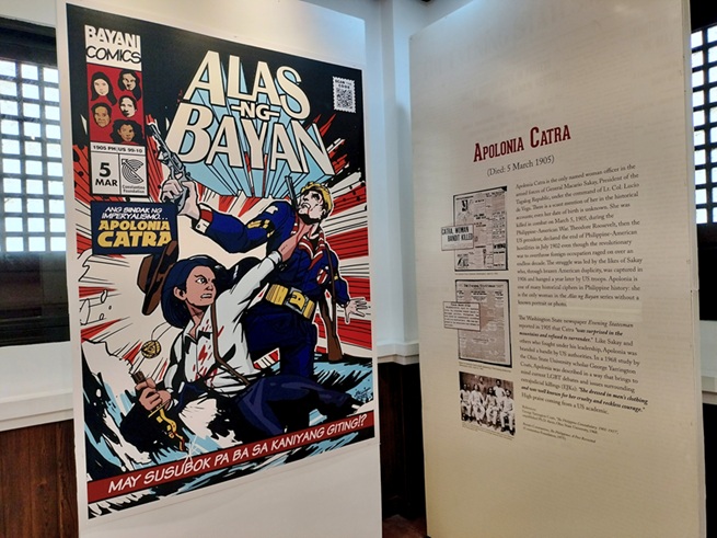 Apolonia Catra, the only woman in the Alas ng Bayan series without a known portrait or photo, is also featured. The panel acknowledges that the circumstances of her life, including her birthday, are unknown. What is widely known is she was the only woman officer in Sakay’s armed forces under the command of Lt. Col. Lucio de Vega, and was killed in combat on March 5, 1905, during the Philippine-American War. She “was surprised in the mountains and refused to surrender,” and, like Sakay et al., was branded a bandit by US authorities. After her death, Sakay was captured in 1906 and hanged a year later by US troops.