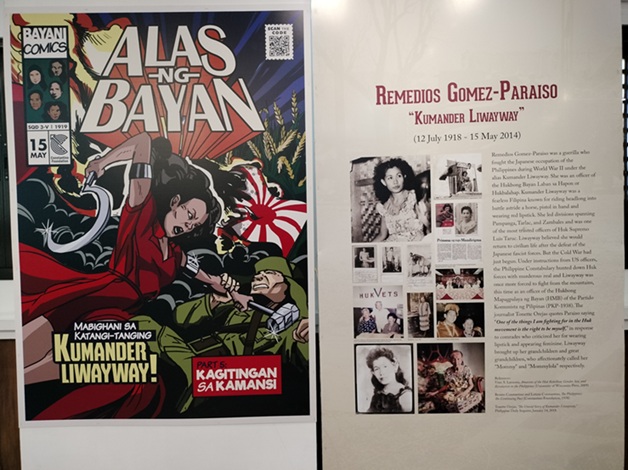 The last panel is on Remedios Gomez-Paraiso aka Kumander Liwayway (12 July 1918-15 May 2014), who fought against the Japanese occupation of the Philippines in World War II. Liwayway was a trusted officer of Hukbalahap Supremo Luis Taruc, and led troops in Pampanga, Tarlac, and Zambales.