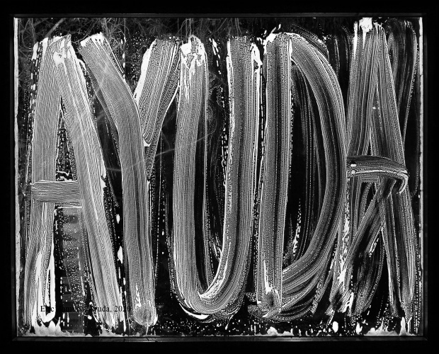Anong ginagawa mo? is a single-channel video that shows the action of washing a window with soap. It is mesmerizing to watch at the repetitive action of making soapy circles. Using a duratrans lightbox, six video stills show different soapy strokes. Two stills form the words “Laya” and Ayuda” — a silent call to action. The video is also “a reflection on isolation, ritual, cleansing, and endurance.”