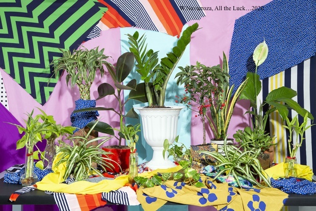 Wawi Navarroza (b.1979) Her work, All the Luck You Need (XXXX) shows a tableau of good luck plants with a background of cut fabrics in vibrant colors. Done in January 2020, it was meant as an auspicious offering to the new decade unfolding before us, with a wish for health and fortune. In hindsight, we really need all the luck to overcome this pandemic.