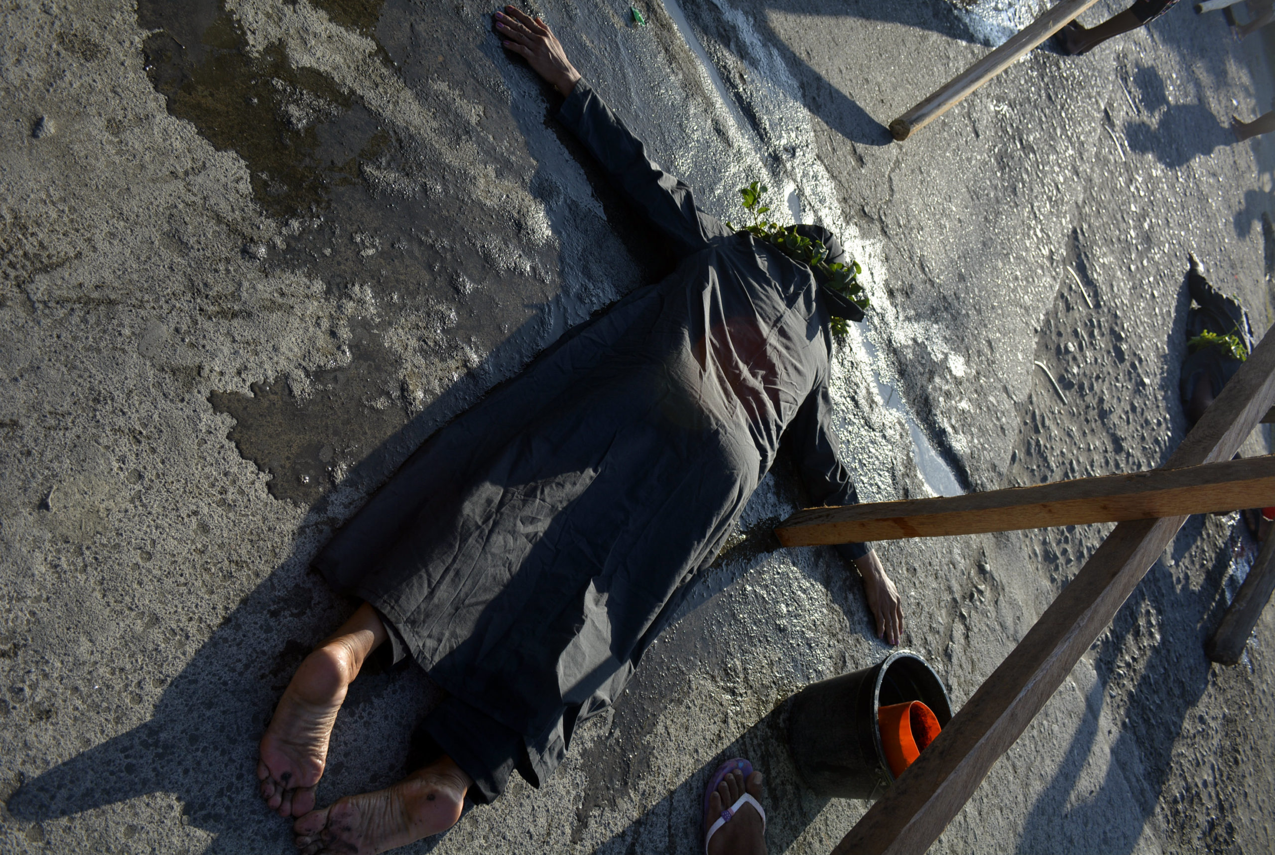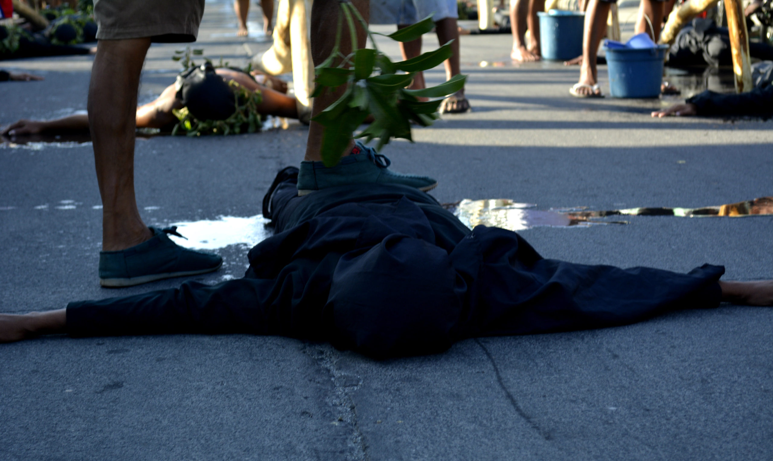 Several people carrying buckets would once in a while splash water on the ground and on the penitents’ feet to cool their soles.