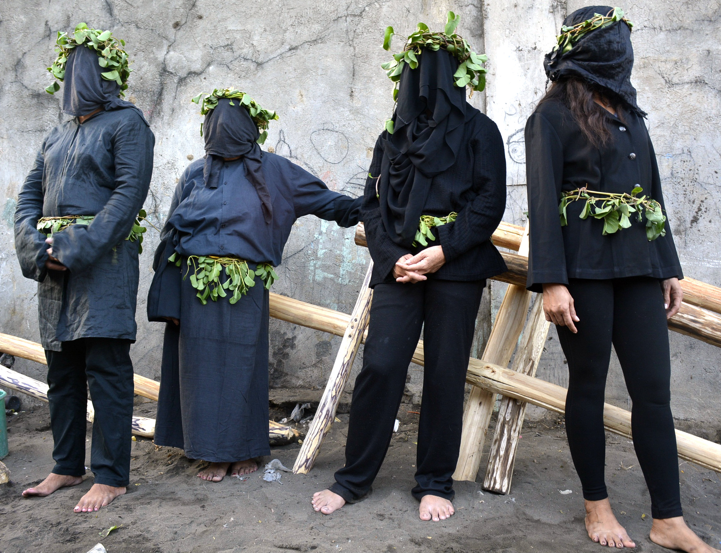 As early as 4 a.m. on Friday, Zafra and some 50 women, all in black dress and black veil, and 30 men, with their faces also covered with black cloth and their head crowned with leaves, lined up along the shore. Around 500 spectators had also gathered to witness the yearly display of devotion.