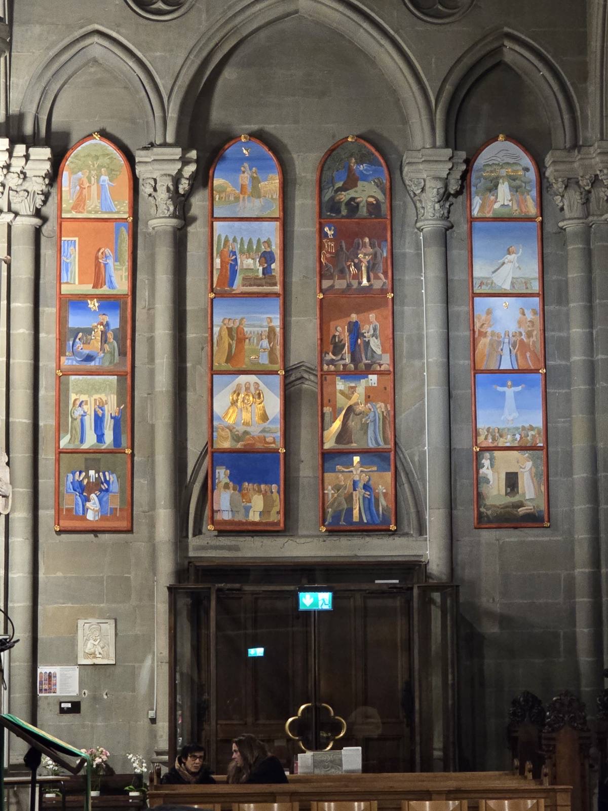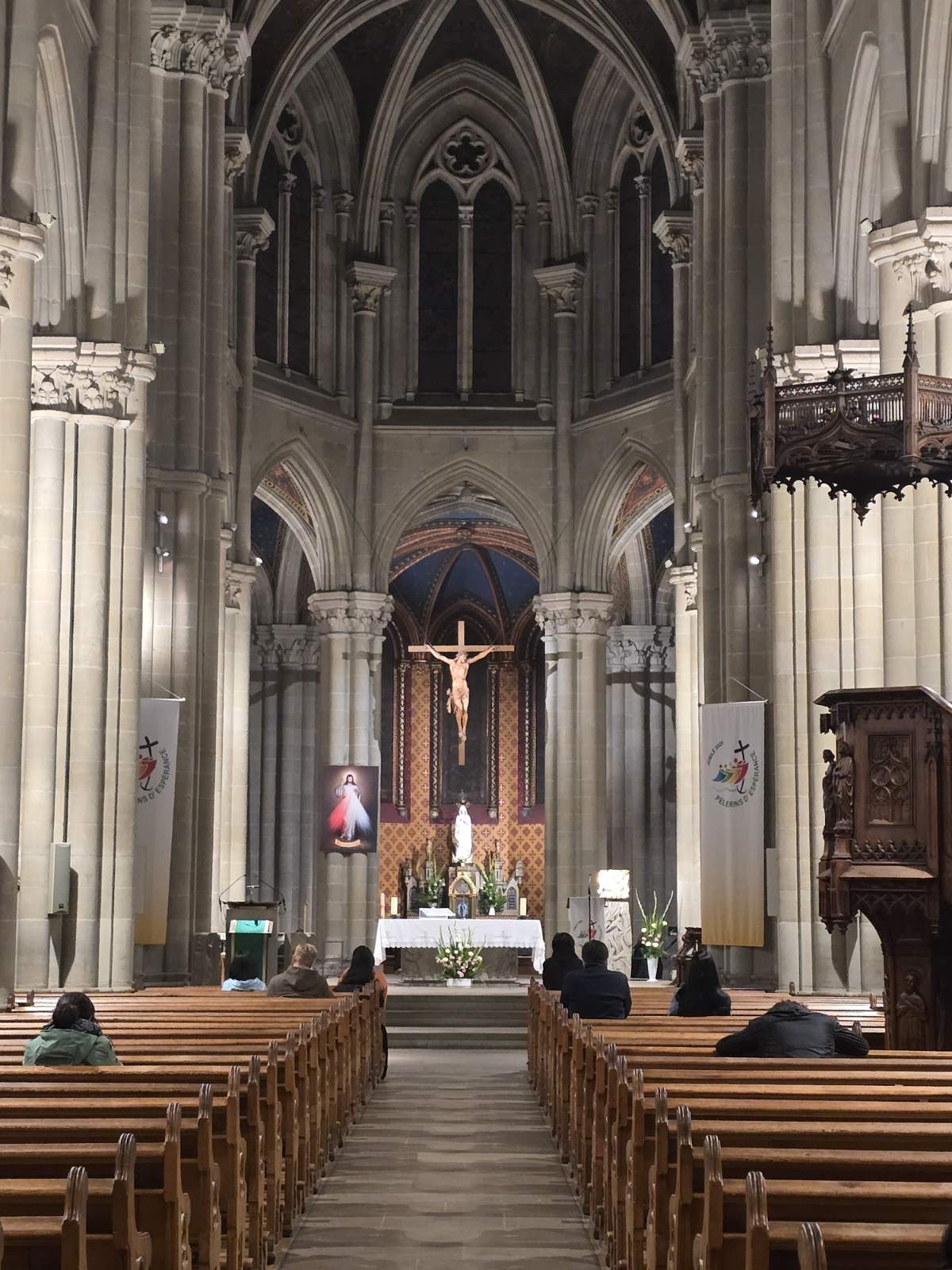 The Sunday evening Mass is organized by the St. John XXIII parish, which serves English-speaking residents and tourists passing through Geneva. Martellet and most of the choir members are parishioners of St. John XXIII.