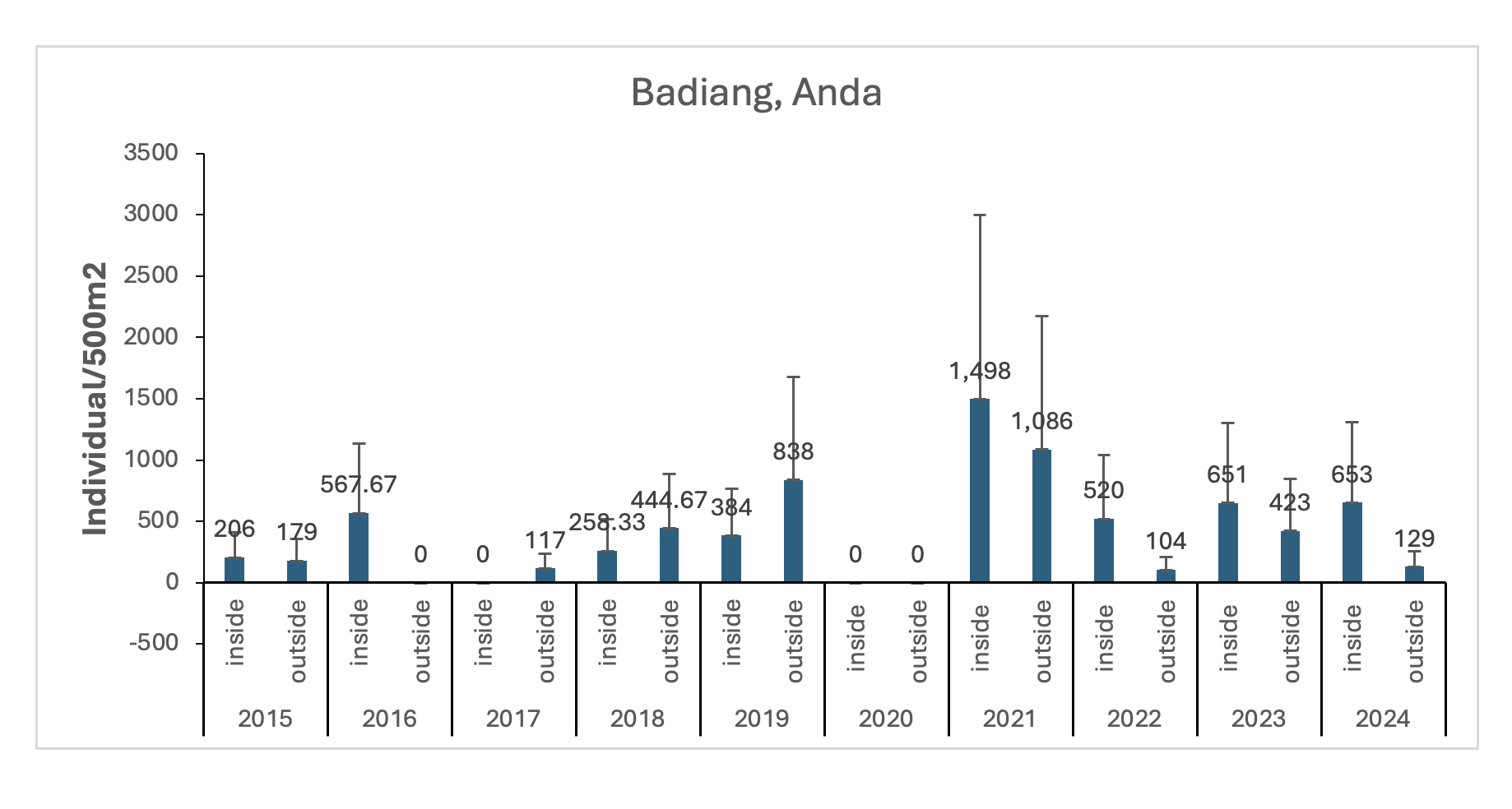 Figure 4. Species Density of Badiang MPA in year 2015-2024. (BPEMO, 2025)
