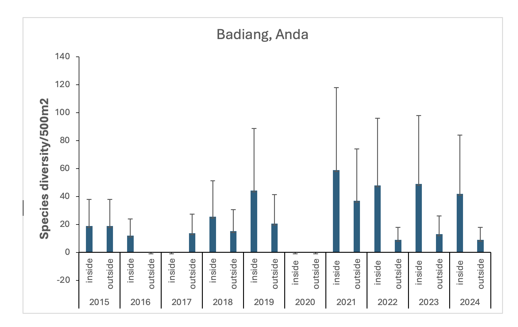 Figure 5. Species Diversity of Badiang MPA in year 2015-2024. (BPEMO, 2025)
