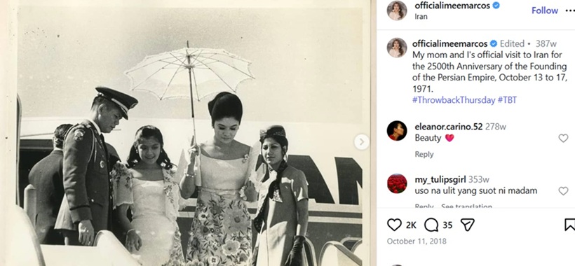 I remember my mother led preparations for a welcome ceremony held by the Filipino community in Tehran for Marcos when she arrived for the festival. Mama even had clueless me recite a poem or welcome remarks for the occasion.