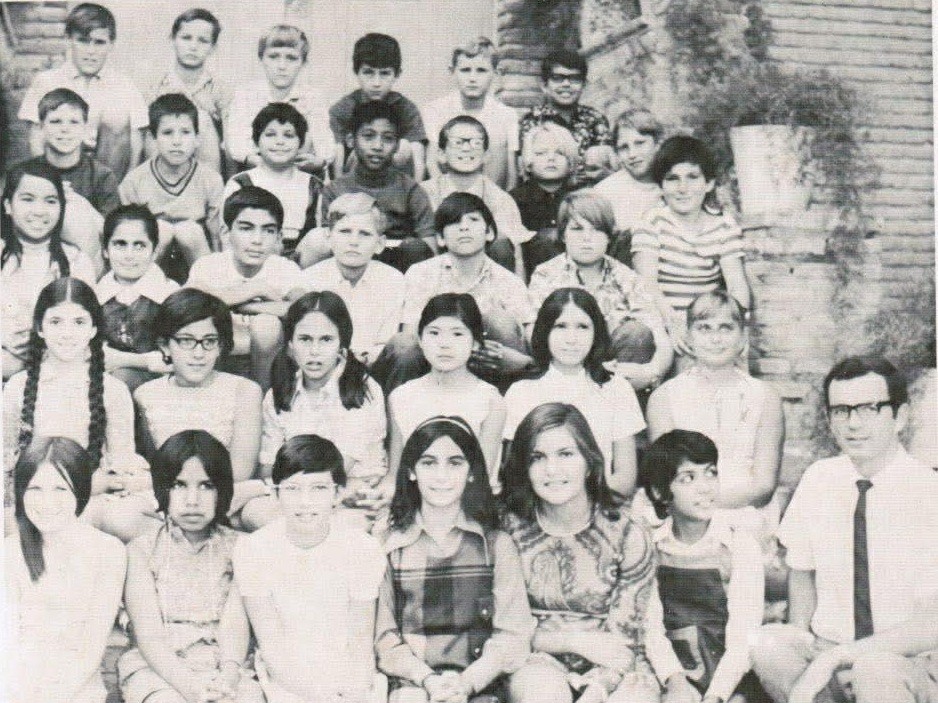 Sixth grade class photo on the stairs leading to the main school building. I’m first person on the left, third row,