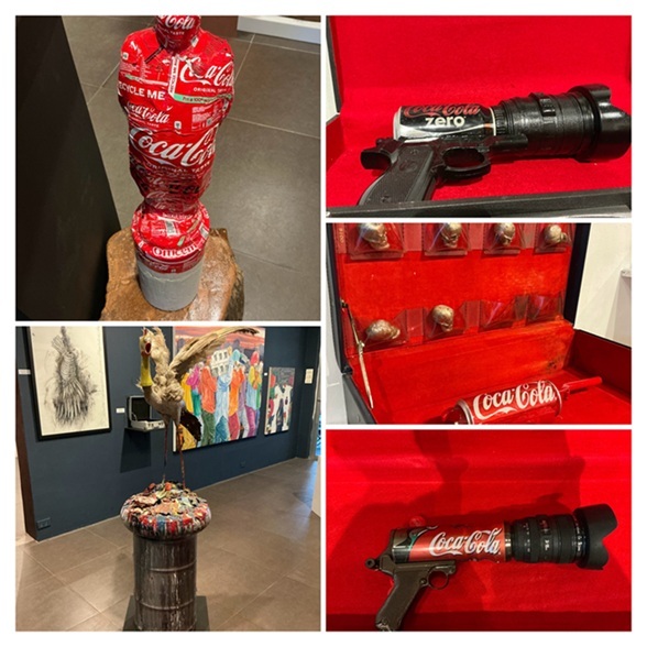 A husband-and-wife art team, the Alquilizans are known for their large-scale installations and sculptures and the use of nontraditional materials such as cardboard, found objects, used rubber slippers, tin cans, reclaimed teakwood, baby sweaters, or hand-embroidered fabrics.
